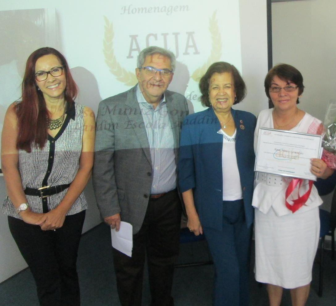 Na foto: Neusa Nascimento da Simetria, Aluizio Cunha da ACIJA, Palestrante Francisca Talarico e Rosa Muniz do Jardim Escola Aladdin.