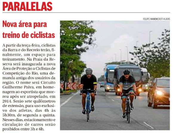 A partir da próxima terça-feira 23/02, será aberta uma nova Área de Proteção a Ciclistas de Competição do Rio (APCC), assim como existe no Aterro do Flamengo, mas desta vez na região da Barra e Jacarepaguá: será na pista da Praia da Reserva. Os atletas poderão pedalar por 7 quilômetros, entre 4h e 5h30, sem ter que disputar espaço com outros veículos. Atenção motoristas, o bloqueio da pista começará 3h e vai até 6h. É o tempo necessário para montagem da reversível e para garantir a segurança de todos.