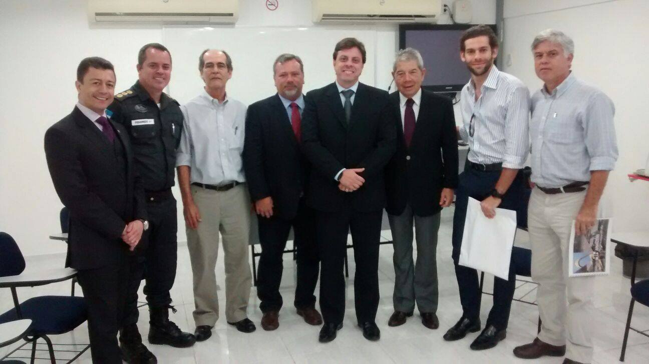 Na Foto: Promotor Eduardo Paes, Coronel Rogério Figueiredo de Lacerda do 18° BPM, Artur Moura Conselheiro da ACIJA, Dr.Rodolfo Waldeck da 32ª DP, Edson Parente Neto Presidente da ACIJA, Ayrton Xerez da Carvalho Hosken, Eduardo Buffara da GB Armazéns e Leonardo Queiroz da GB Armazéns.