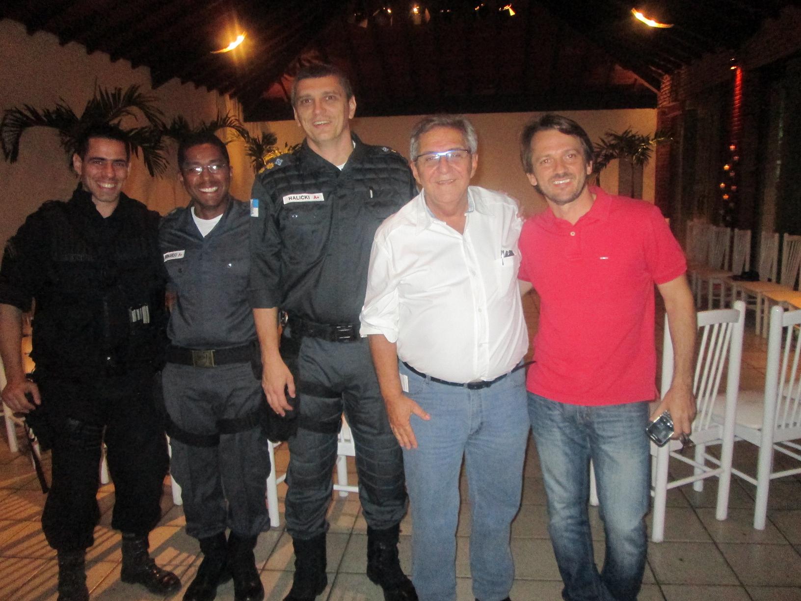 Na foto: Major Bernardo e Ten. Cel. Halick do 18º BPM, Aluizio Cunha e Subprefeito Alex Costa. |