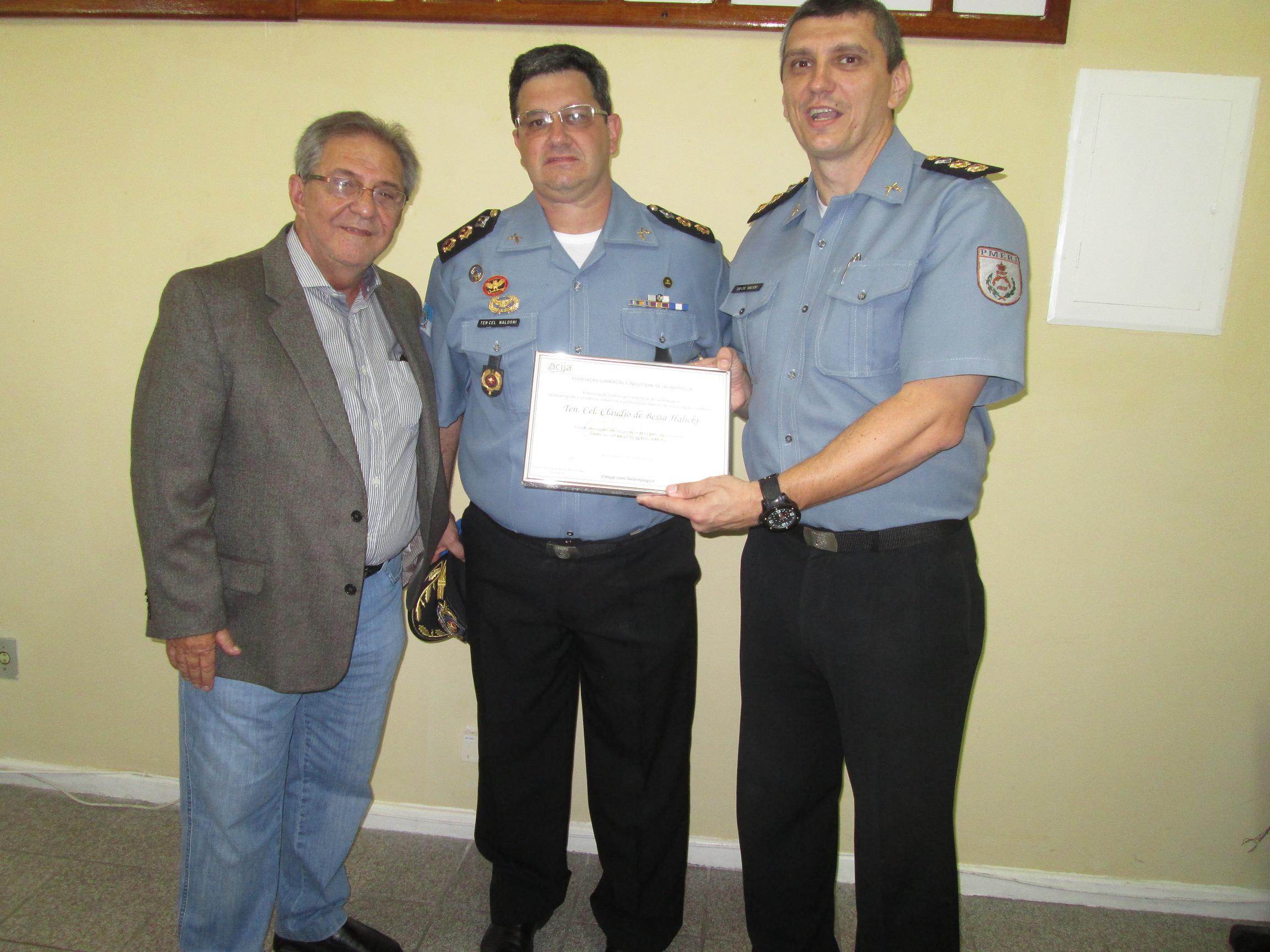 Na foto: Aluizio Cunha da ACIJA, Ten. Cel. Ricardo Alexandre Romar Naldoni do 18ºBPM e Ten. Cel. Cláudio de Bessa HalickI do 18ºBPM.
